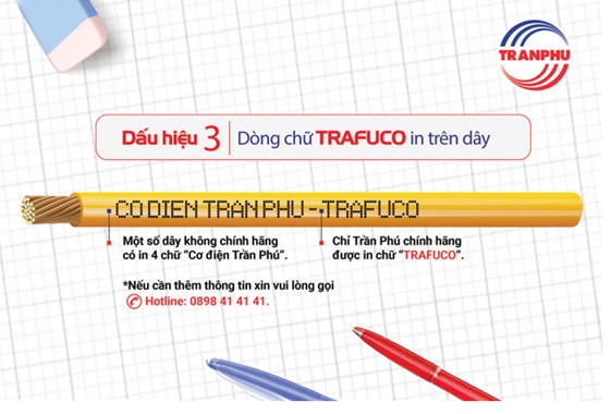 Trên từng mét dây sản phẩm có ghi dòng chữ “CO DIEN TRAN PHU – TRAFUCO”