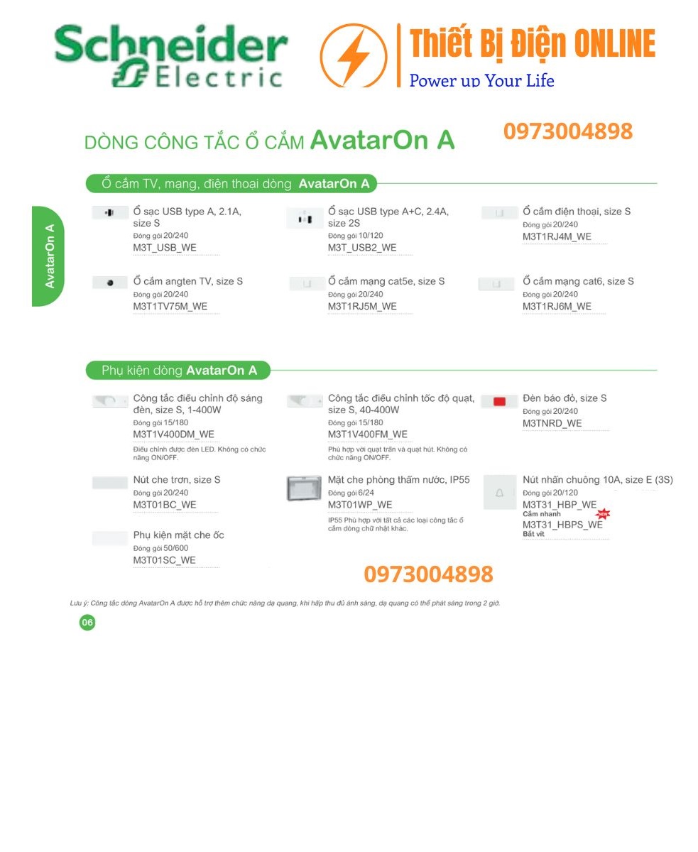 | Tên sản phẩm | M3T_USB_WE Schneider Ổ cắm sạc USB type A 2.1A AvatarON A |