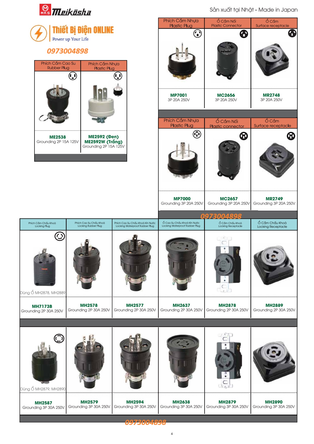 Catalogue Ổ cắm, phích cắm Meikosha Japan