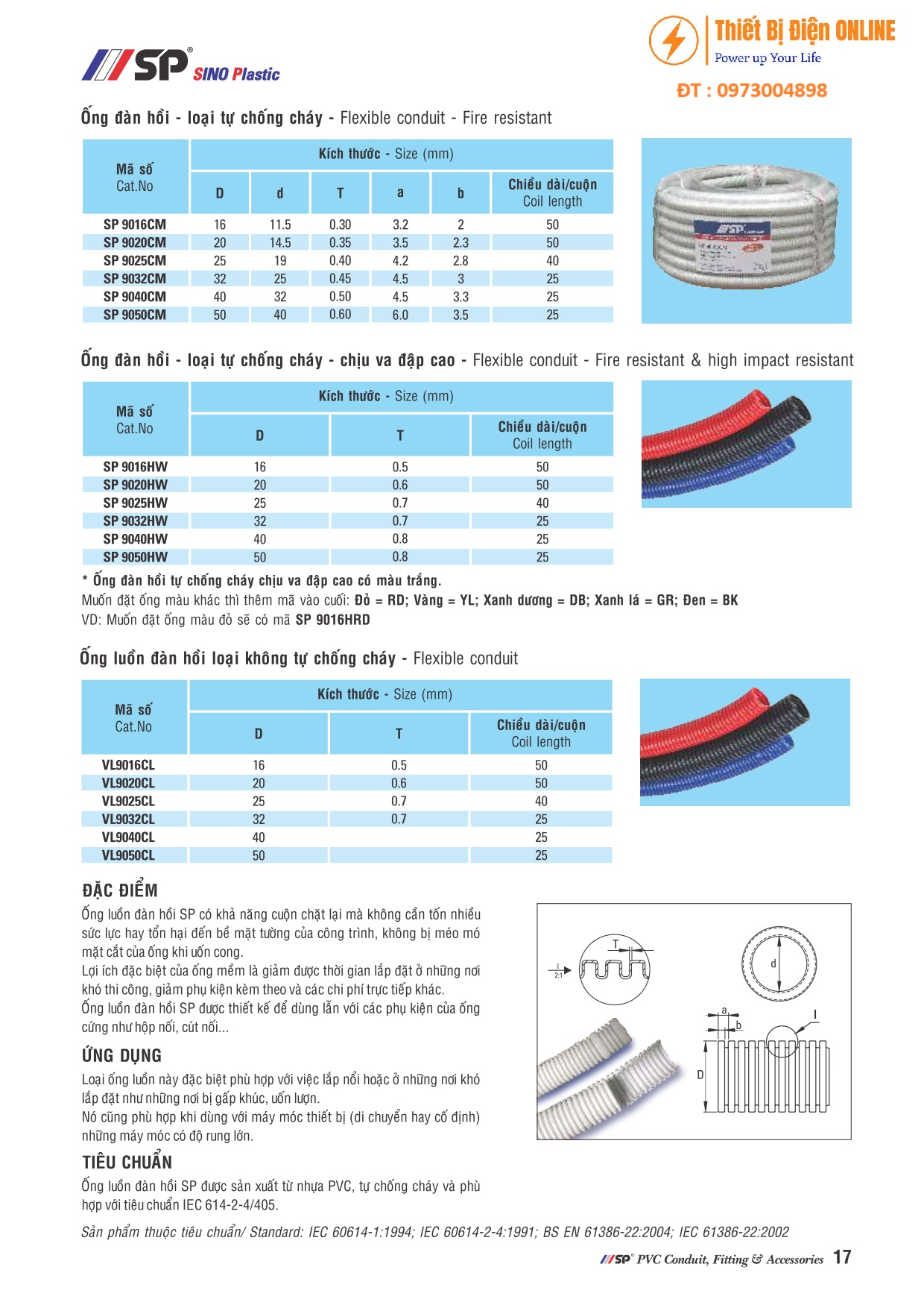 Catalogue: Ống ruột gà đàn hồi PVC D16 SP SINO SP9016CM